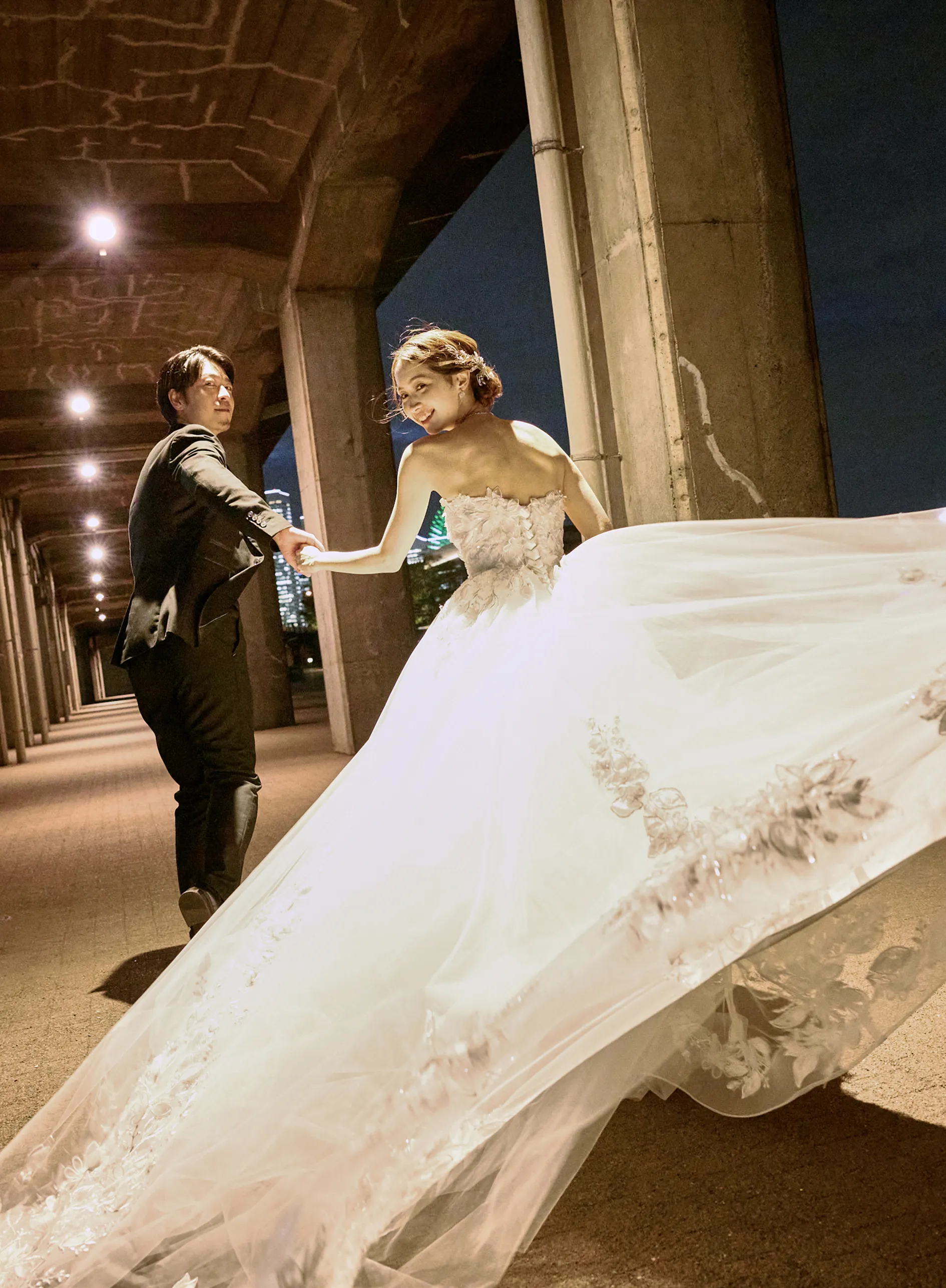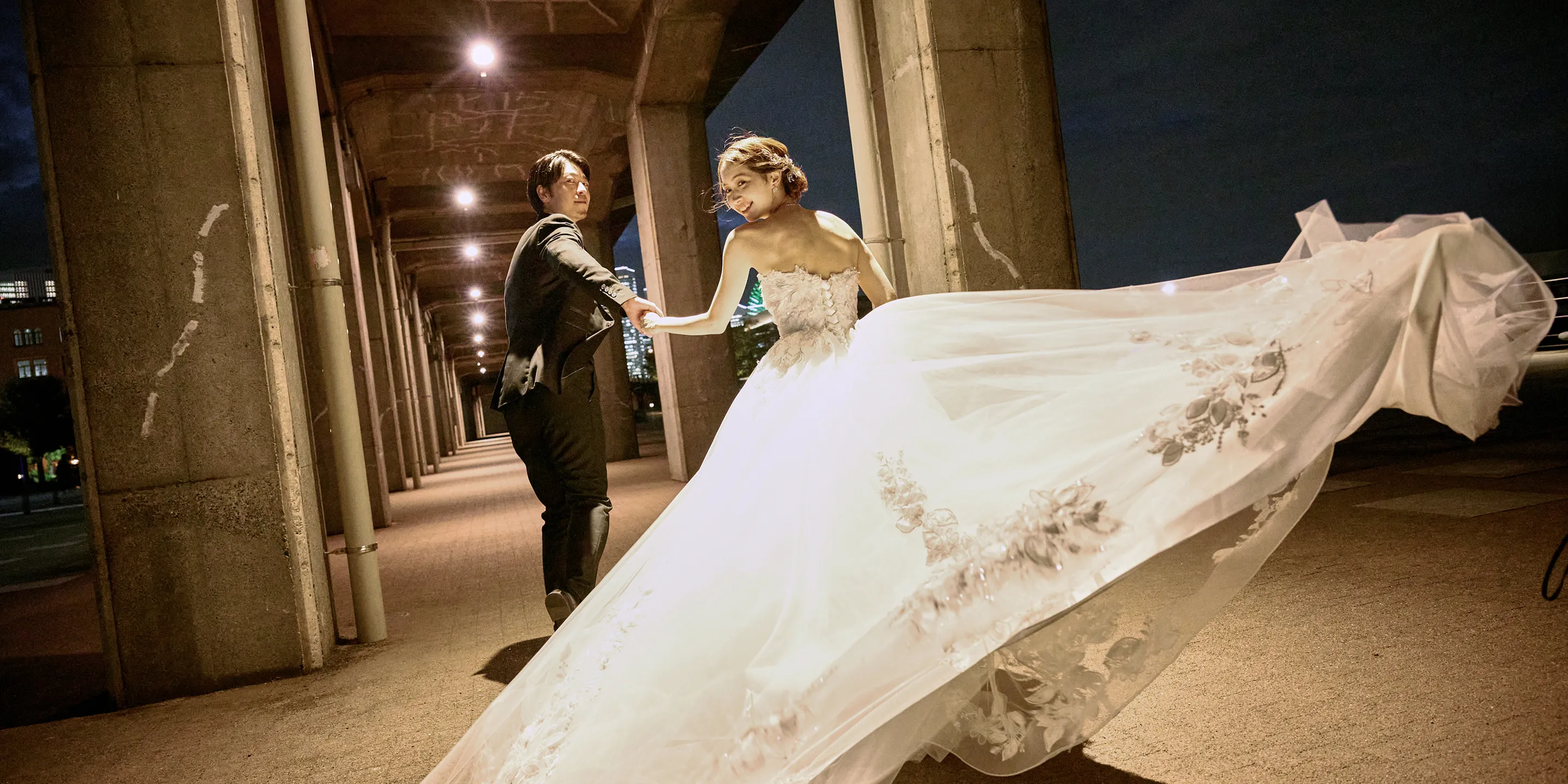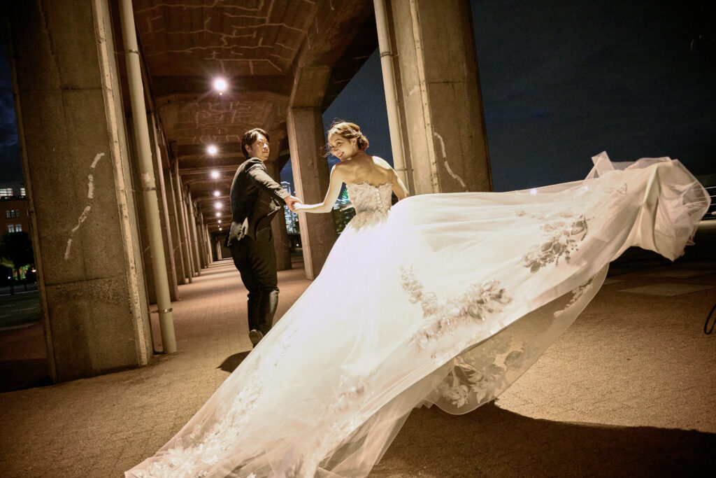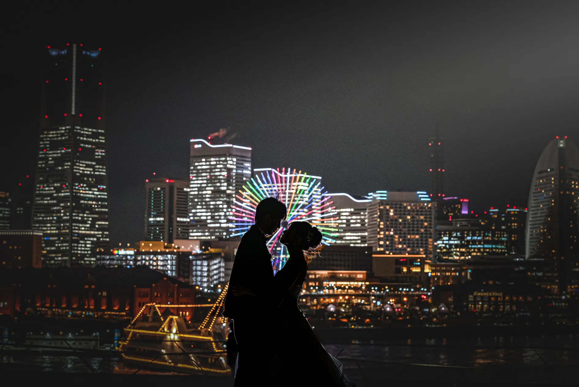 横浜のパノラマ夜景を背景に、洗練された一瞬をドラマチックに記録するプラン